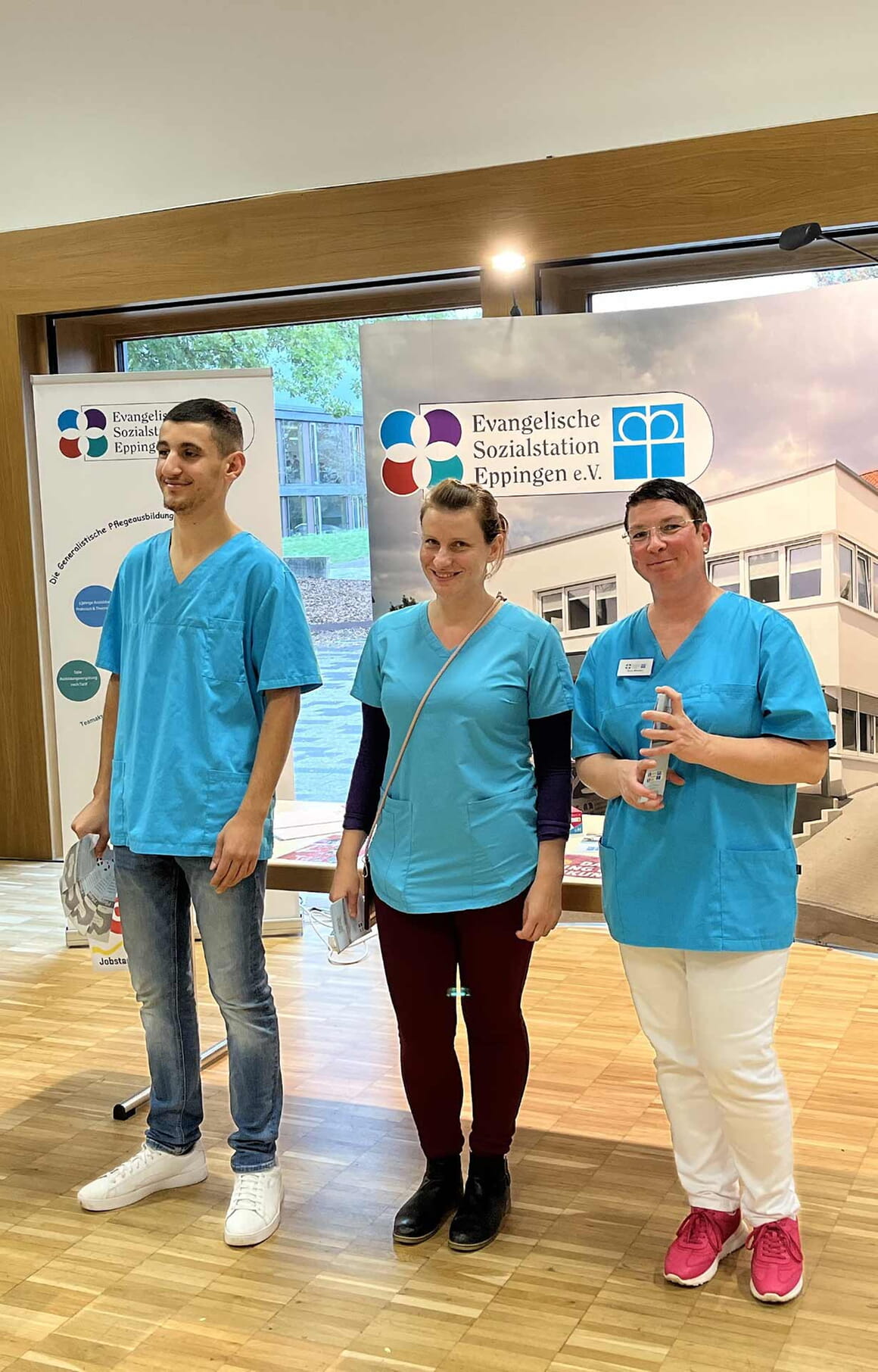 Auch in diesem Jahr waren wir wieder auf der Ausbildungsmesse „Jobstart-Treff“ in Eppingen vertreten. Am 22.10.2024 nutzten wir die Gelegenheit, mit jungen Menschen, die den Einstieg ins Berufsleben suchen, in Kontakt zu treten. Unser starkes Team, bestehend aus den Praxisanleiterinnen Jelena Schmidt und Susann Markert sowie unserem Auszubildenden Arli Veliko, informierte über die Ausbildungs- und Praktikumsmöglichkeiten in unserem Haus.