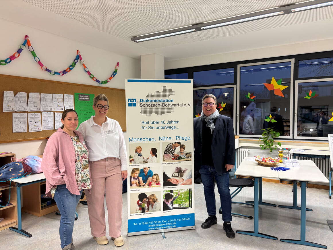 Am 19.11.2025 haben wir als Ausbildungsbetrieb mit Auszubildenden zur Pflegefachkraft an der Ilsfelder Ausbildungsmesse am Steinbeis Schulzentrum teilgenommen. Wir konnten dabei zahlreiche interessante Gespräche mit Schülerinnen und Schülern führen und hatten dabei einen spannenden Austausch. Vielen Dank an alle, die diese Messe vorbereitet und organisiert haben.