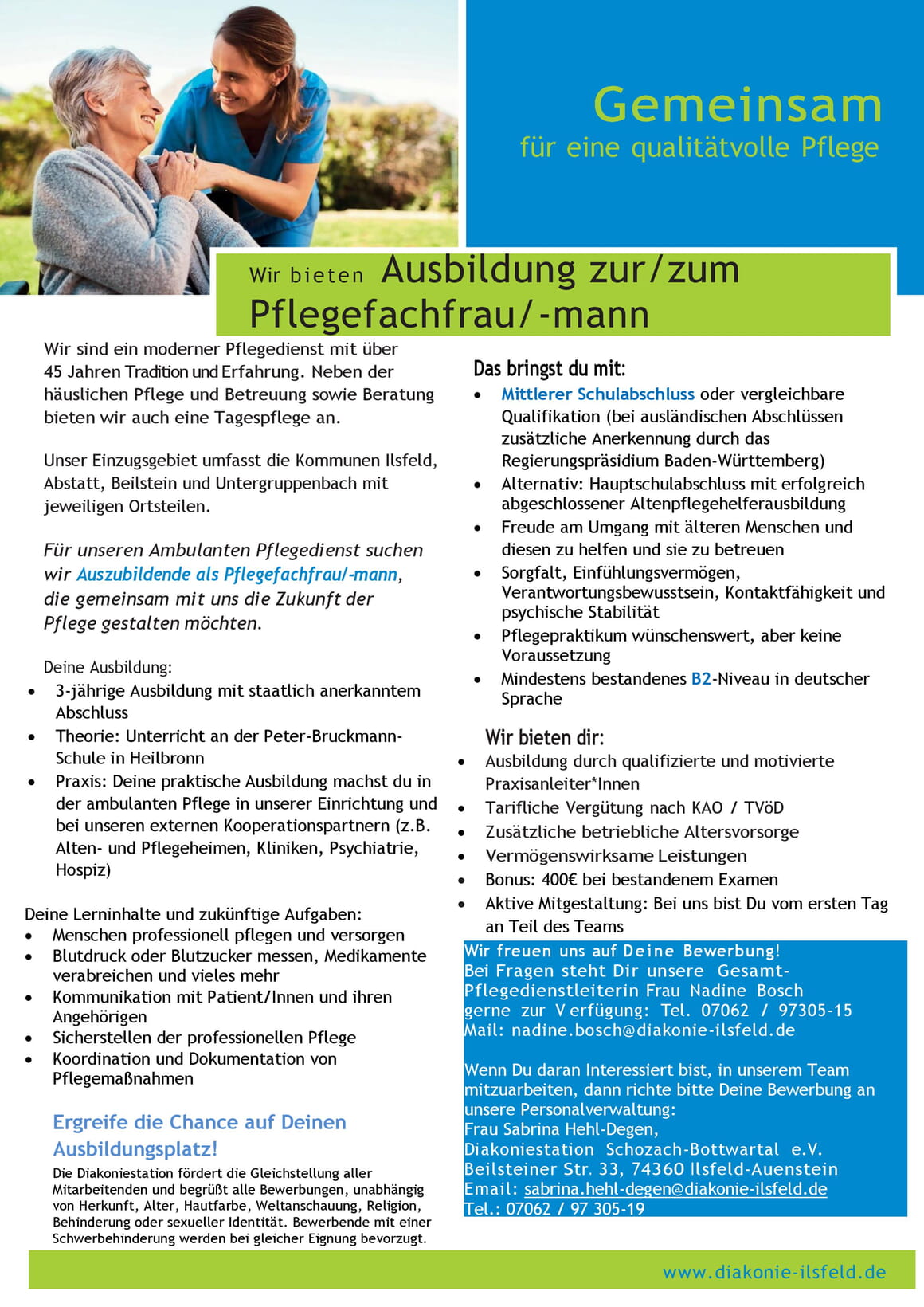 - Wir bieten Ausbildungsplatz zur/m Pflegefachfrau/mann